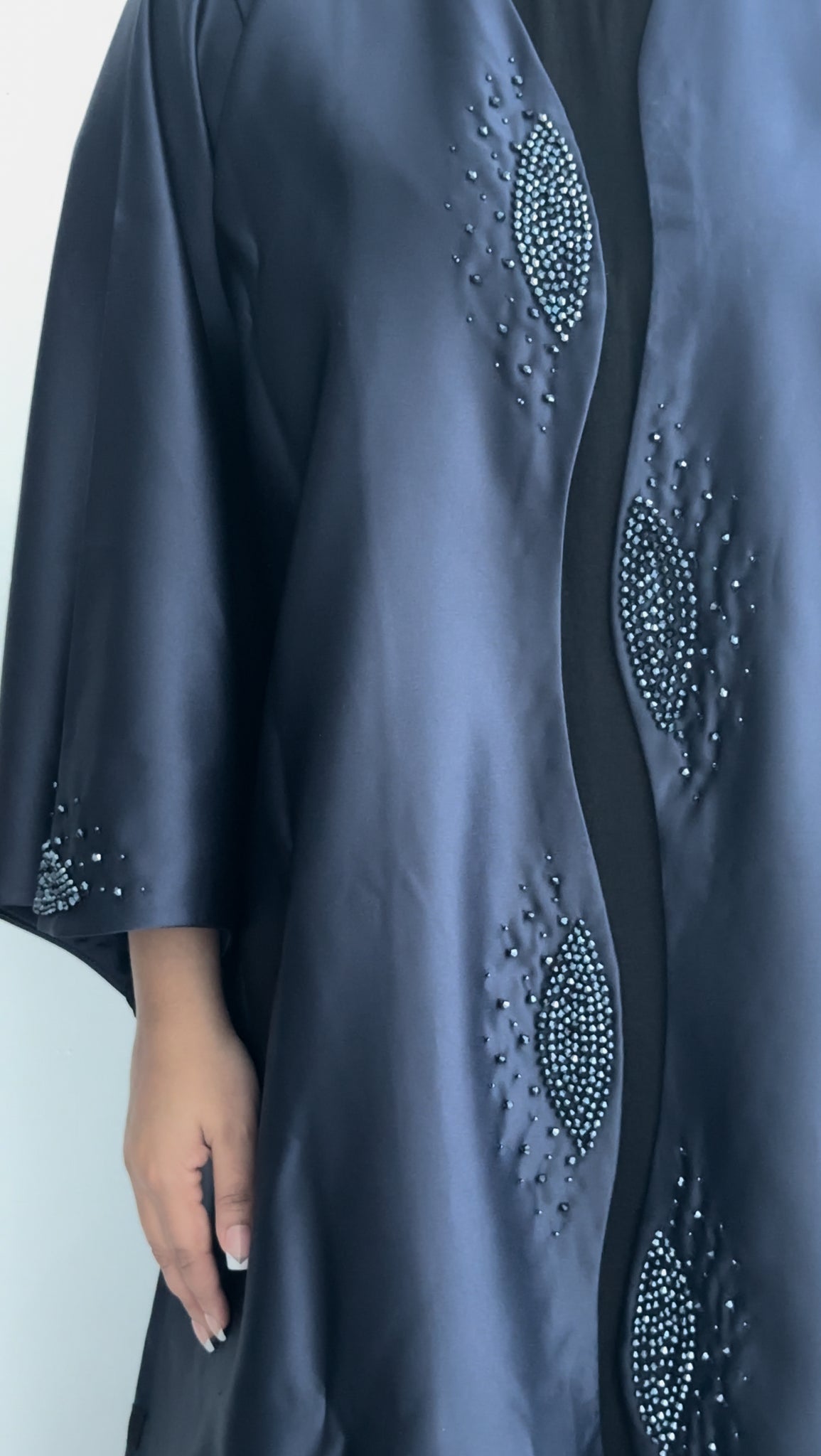 - A-line style abaya made with luxury Satin Material and beautiful handwork to give you that royal yet elegant modest vibe.